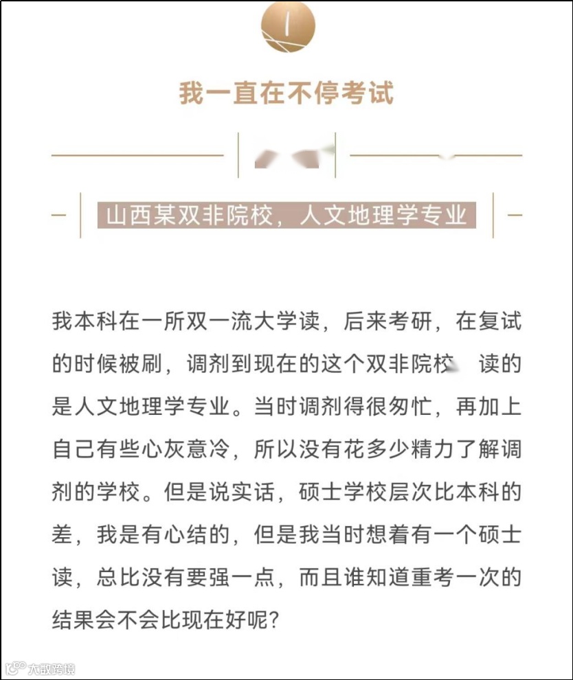 其中一位姑娘,本科在双一流大学读,后来去山西某双非院校读研,专业是人文地理学。