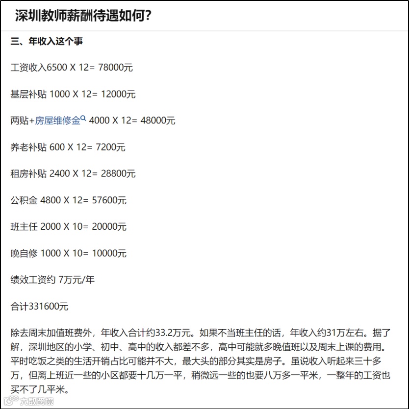 深圳中小学的待遇,知乎有人算了算,可以达到一年二三十万。