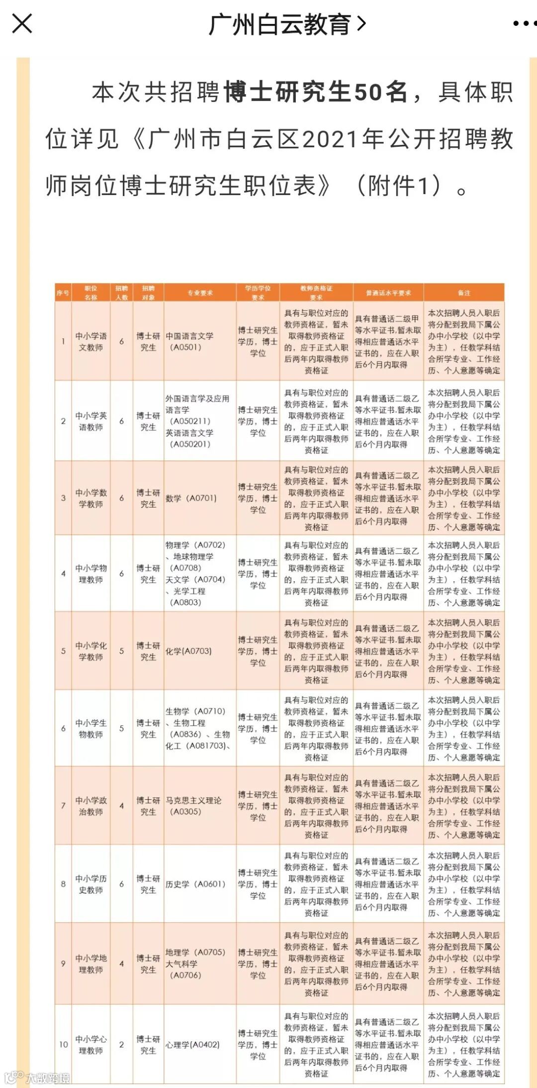 白云区的招聘里,已经明确博士起步,其中两名博士需要去教非热频的心理课。