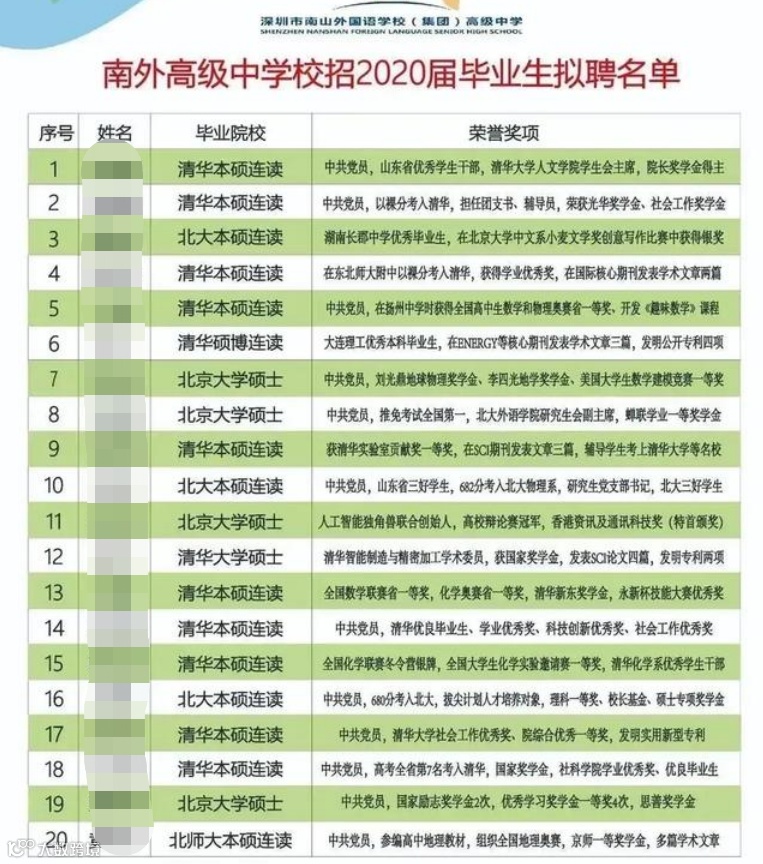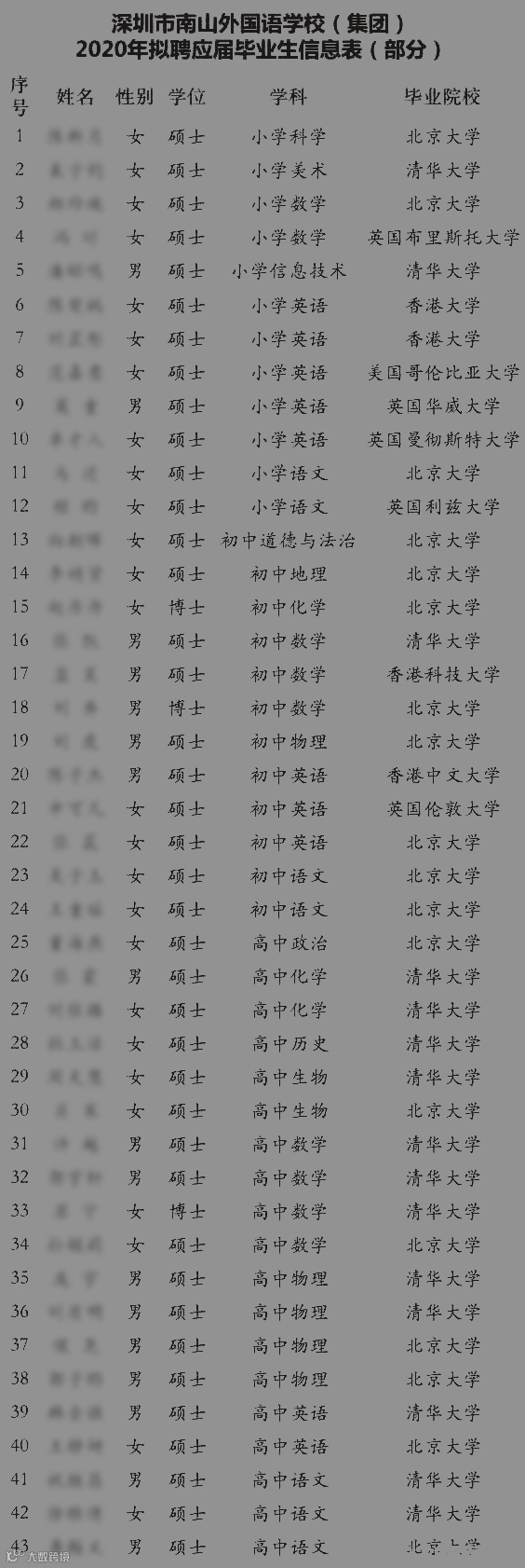 我们也写过,比如这份2020年深圳市南山外国语学校(集团)的拟聘名单。