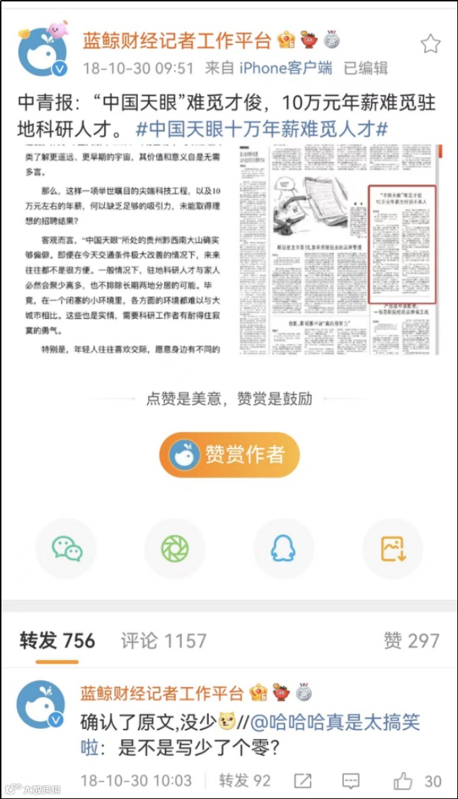 “中国天眼”难觅才俊,10万元年薪难觅驻地科研人才。