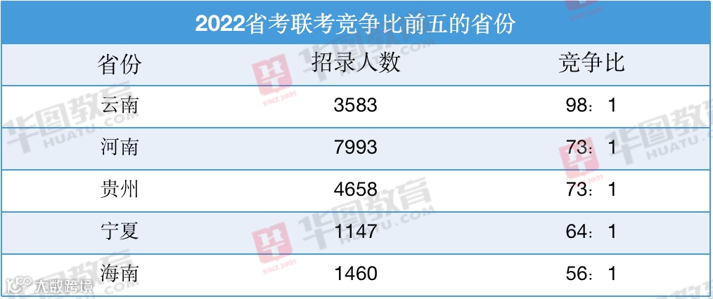 除了国考,现在一些省考也在上演“千军万马过独木桥”的场面,比如河南的平均竞争比为73:1,云南是98:1。