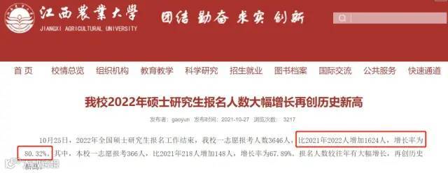2022年西藏民族大学(位于陕西咸阳)考研报名人数暴涨123.2%,江西农业大学猛增80%,湖南工商大学猛增72%,都远远高于著名大学的报名人数增长率。