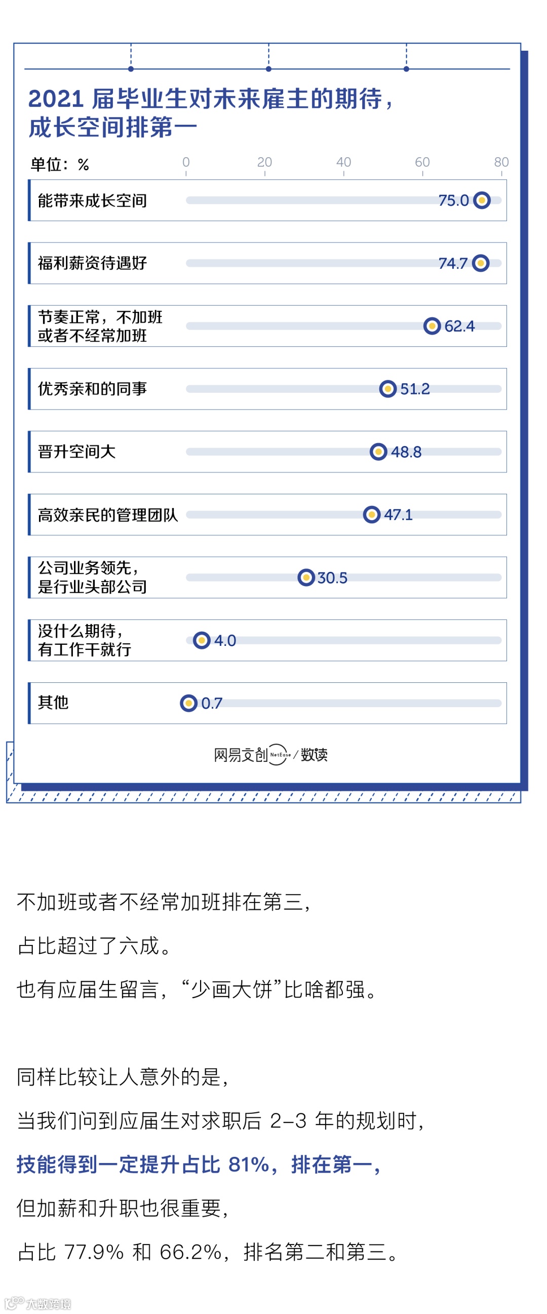 6、能带来成长空间是应届生对未来雇主的最大期待,而在他们的求职规划中,技能提升排第一。