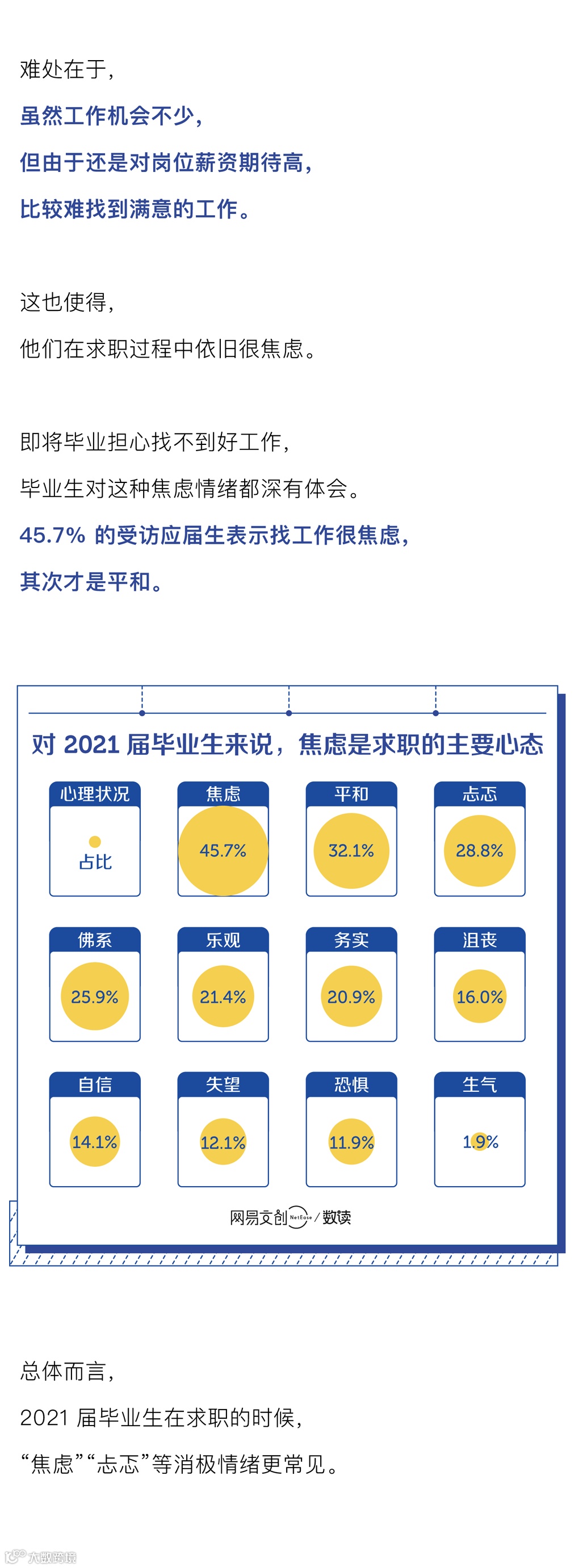 2、焦虑是应届生求职的主要心态,占比 45.7%。