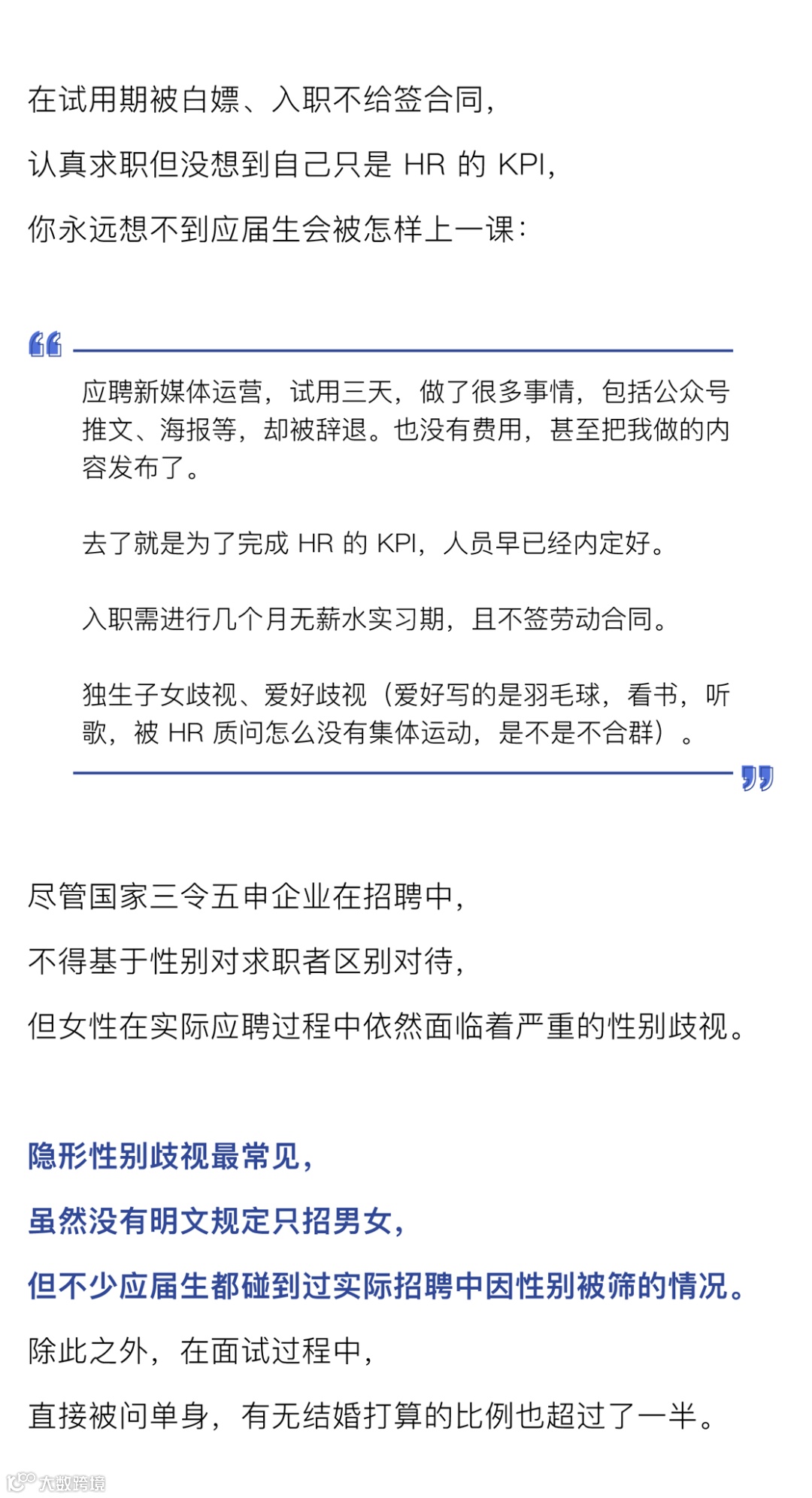 5、虽然没有明文规定不招女性,但实际求职过程中,不少人都遇到过隐性性别歧视。
