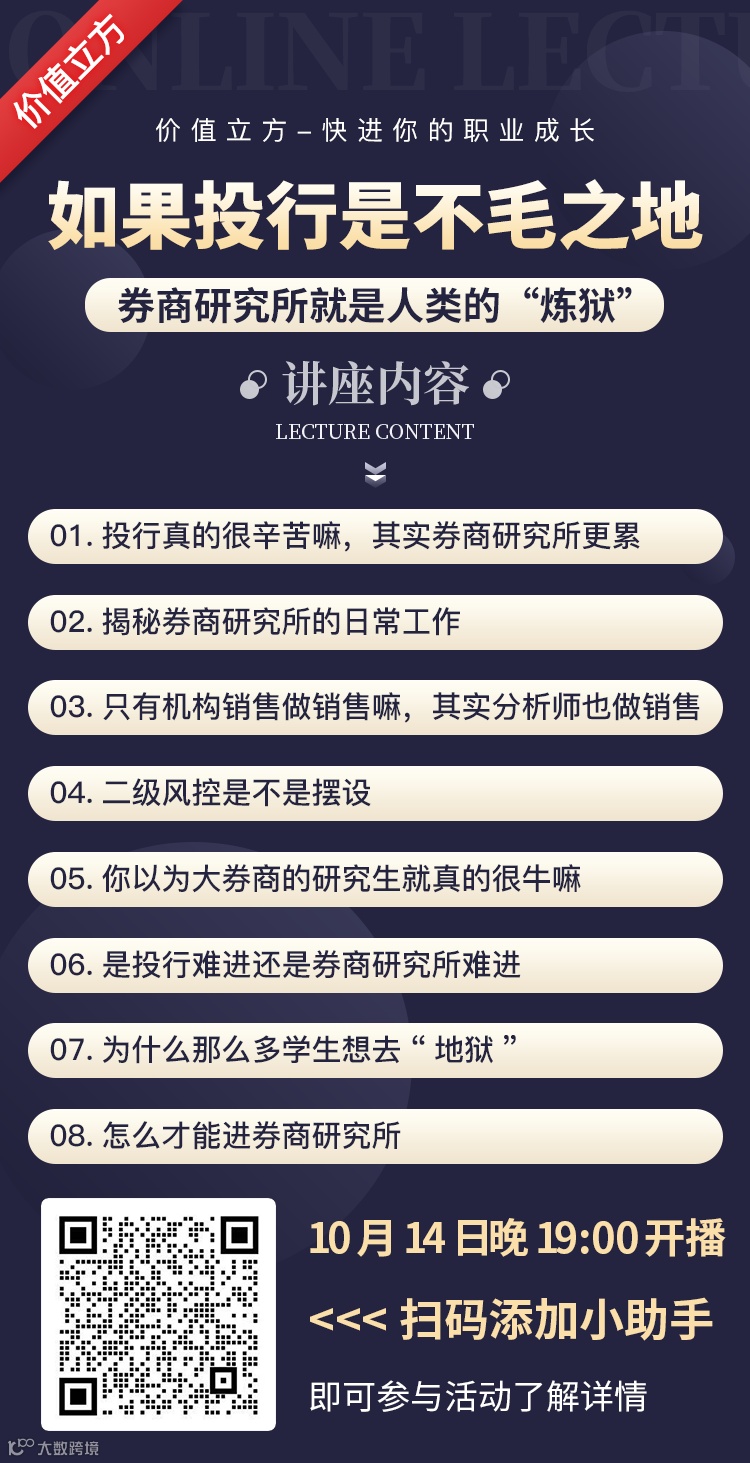 研究员每天要花费大量的时间去销售自己的研究报告,但一个深度的研究报告都是只有晚上加班才能够完成的。(金融小伙伴,快进你的职业成长。想要找金融实习、求职/跳槽到金融行业的朋友们,可添加VX:feifan00999)