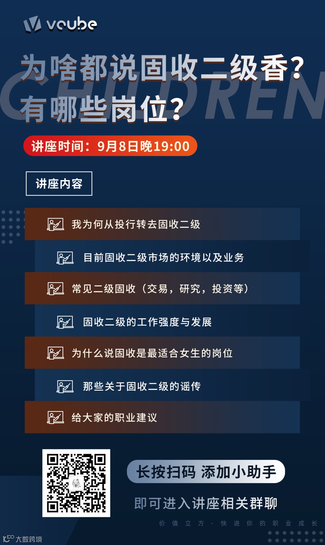 你们还想对固收的岗位了解其他的内容的话,或者是想提升自己的能力进入固收行业,记得扫描下方二维码,进群听讲座,了解更多行业内容。