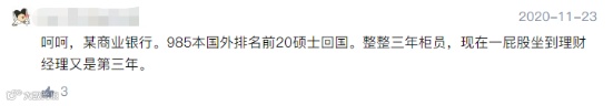还有人说,某银行的管培就是骗你去当柜员,自己是上海某985大学财经专业,进了银行居然还要做柜员......