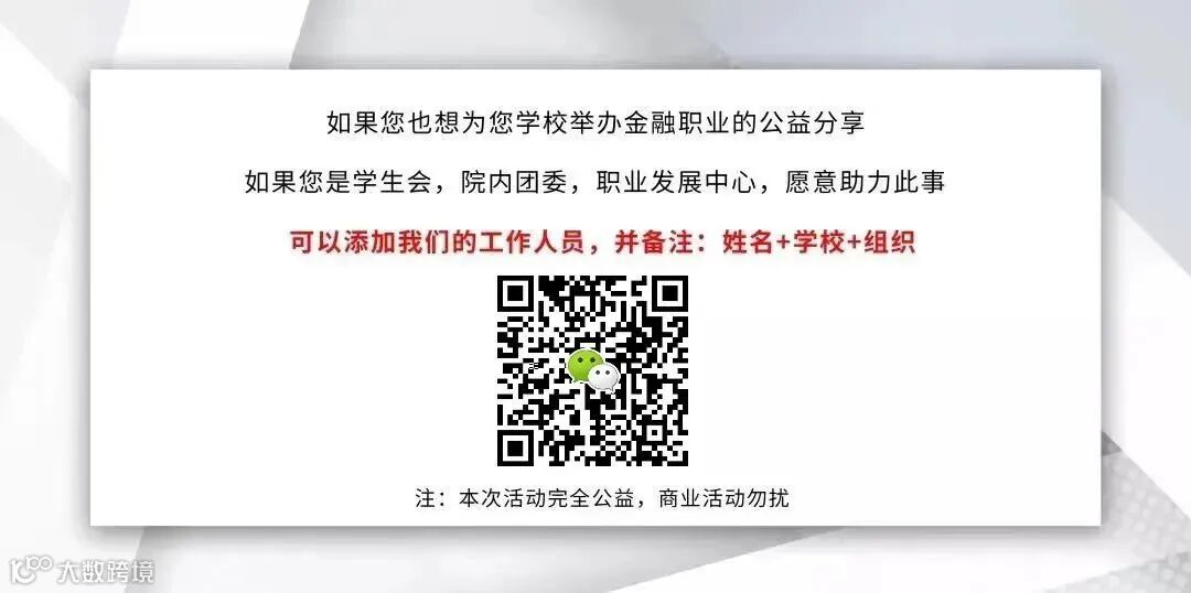 我们欢迎更多的学校来和我们一起联合举办金融活动讲座。