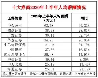 此外,还有6家券商上半年人均薪酬均超过30万元。