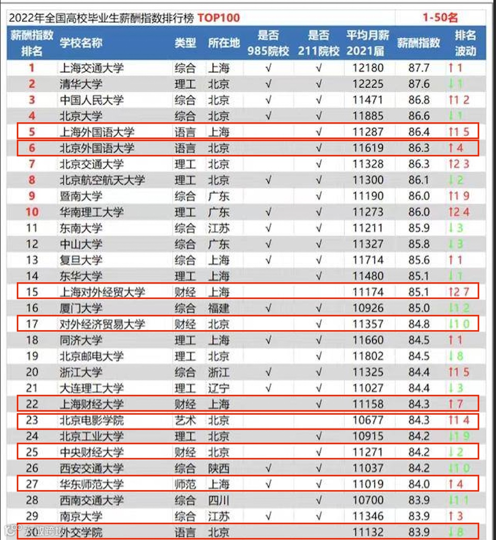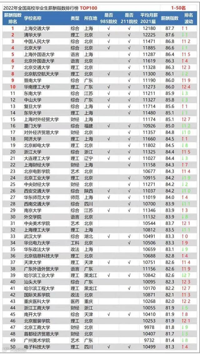 我给你们说,这个榜单呢,是以不同院校的薪酬指数高低情况来进行排名的,评估指数高的院校,那就会排名相对靠前一些;