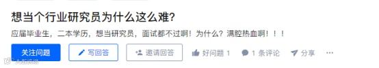 之前在某知名问答平台上面看到有位同学说“我是个二本,想当个行业研究员为什么这么难?”