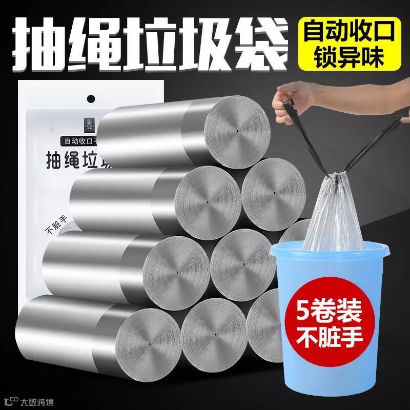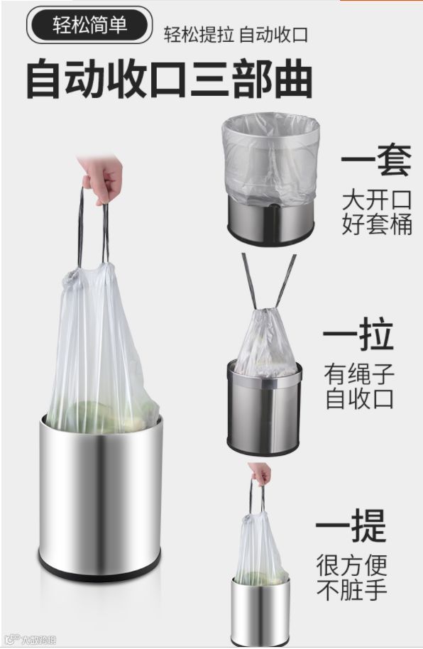 现市面上也有很多抽绳垃圾袋