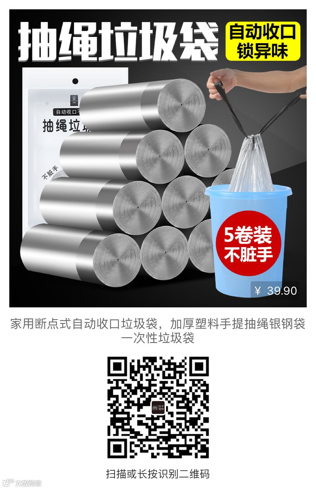 一拉自动收口,完美解决散口垃圾袋