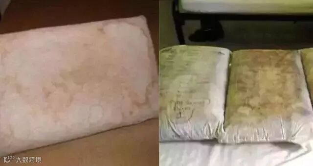 而且枕头枕芯里面全都是浸湿的水渍痕迹