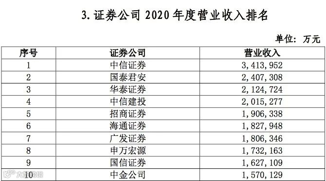 2020年中信不仅家大业大,结果证明业务能力也很能打,341亿元的营收远超第二名的国泰君安。