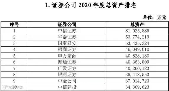 要知道截至2020年末,我国证券行业总资产为8.78万亿元,也就是说中信证券就分走了十分之一。