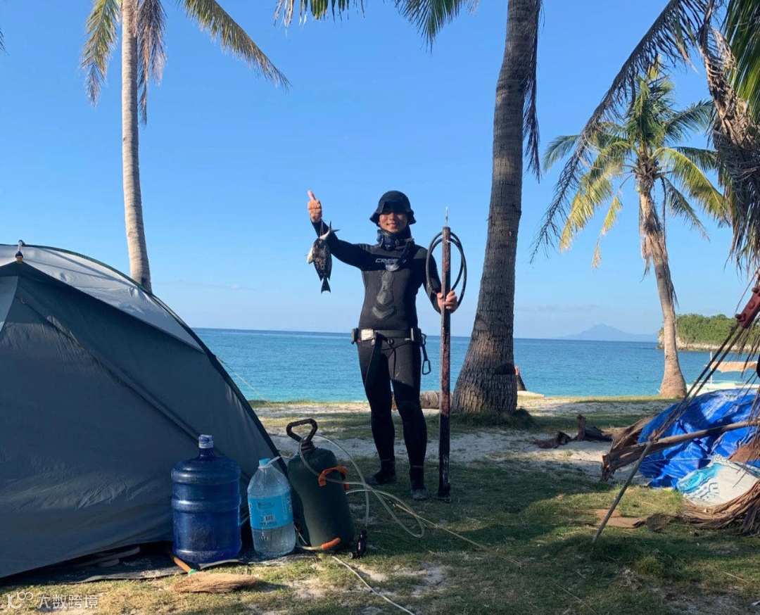 休养了三年后,2020年,我来到菲律宾参加了自由潜水教练班,开启了不一样的人生体验。小时候看鲁滨逊漂流记,我很向往“靠自己双手经营生活”的故事,于是我一个人带着帐篷、渔枪,来到菲律宾的马拉帕斯卡岛(俗称“妈妈岛”),选了一块人迹罕至的沙滩,打算进行为期两周的“荒野求生”。