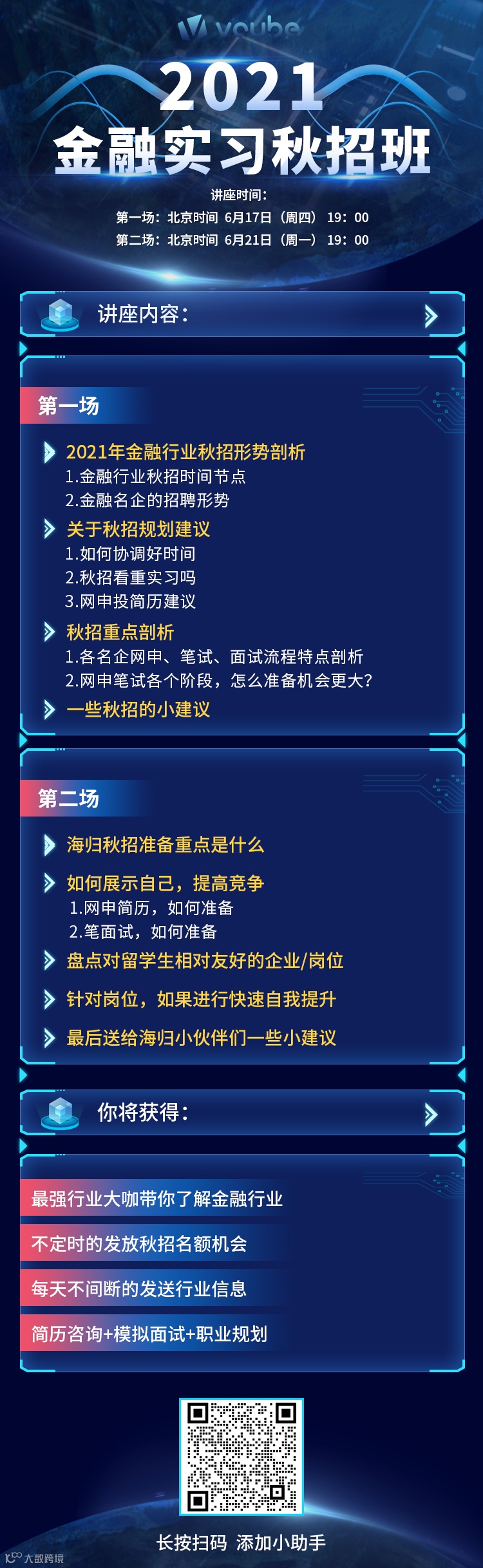 为了让大家更好的准备秋招,更高胜率的斩获秋招offer,金融小伙伴特别在6月17日和6月21日为大家准备了全方位解析秋招的讲座,免费福利,记得来领!