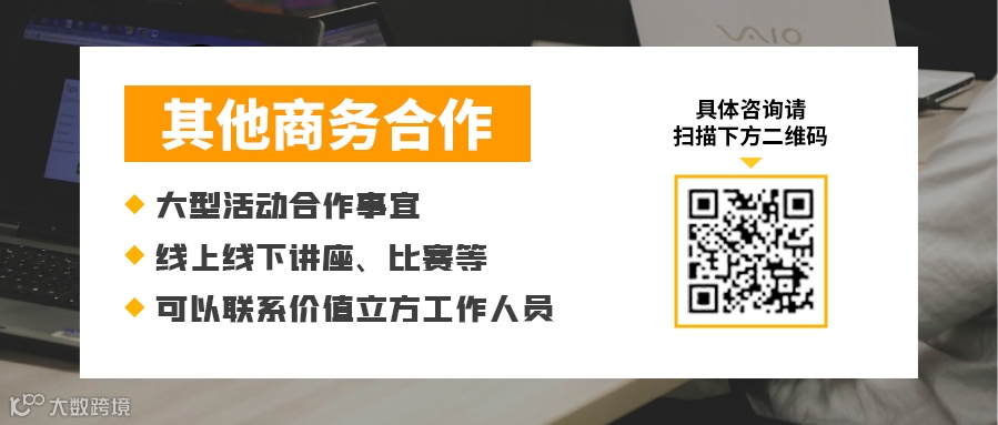 无论您是留学机构、其他教育平台、租房机构,还是互联网公司、科技公司,如果您有任何商业合作意向,例如大型活动合作事宜、线上线下讲座、比赛等等,可联系价值立方工作人员