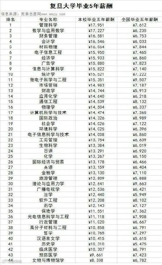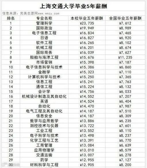 来看看名校毕业五年的工资水平是怎么样的: