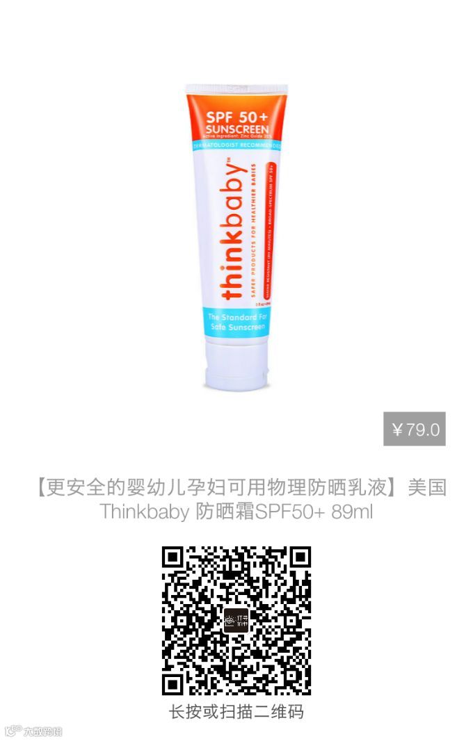 氧化锌是一种比较常见的物理防晒成分,可很好的抵抗太阳辐射。不含有苯甲酸(PABA)、氧苯酮(oxybenzone)等化学成分,所以thinkbaby是绝对安全的物理防晒霜。