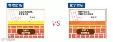 化学防晒就是指将紫外线吸收后,再以一种较低的能量释放出来的防晒方法,这种发放避免了紫外线的直接损伤,从而达到防晒的效果。
