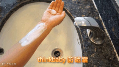 不像其他的不溶于水的防晒产品就会面临不好卸的尴尬,thinkbaby不会哦,温水可卸。这里麻麻们也要注意回家之后一定要给宝宝把防晒清洗干净。