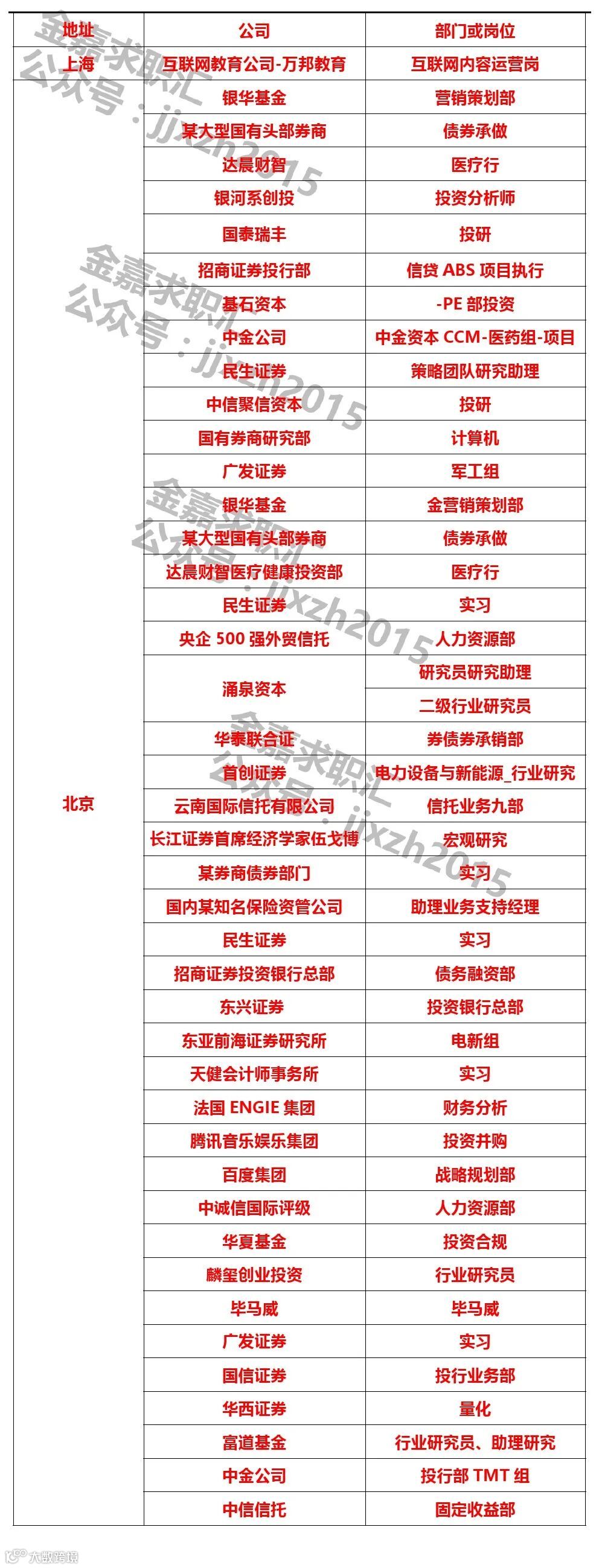 2. 具备投资机构、投资银行或咨询相关领域的实习经历尤佳;