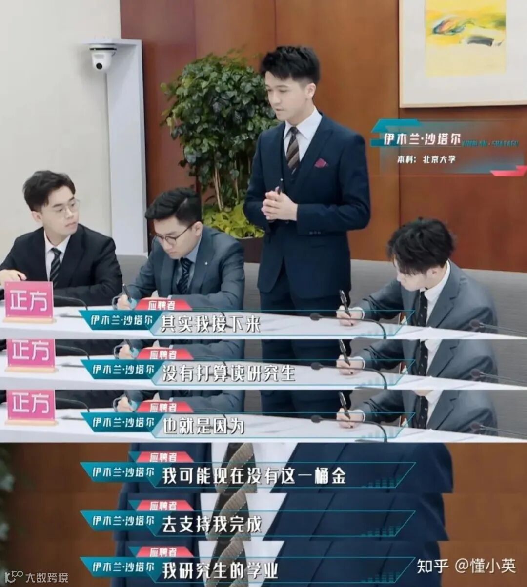 也许这个接近满分的回答,在节目中为他赢得面试官和观众的共情,进而敲开证券公司的大门。
