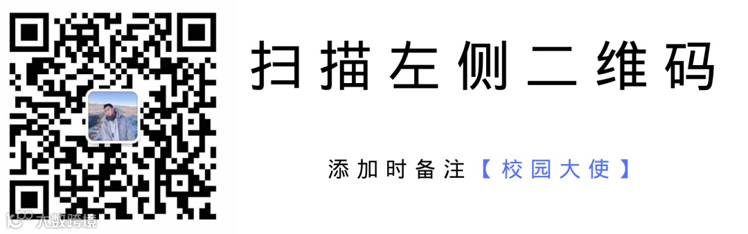 扫描二维码,添加负责人微信备注校园大使,即可参与筛选。
