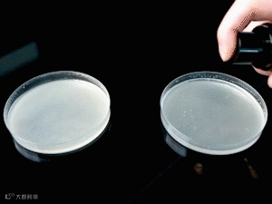 对其中一个培养皿使用Little Touch 杀菌喷雾。