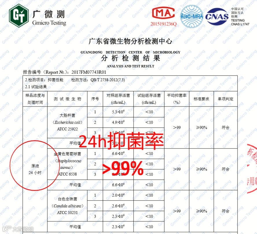 并且,24小时过后,杀菌效果,依然能够高达99%。