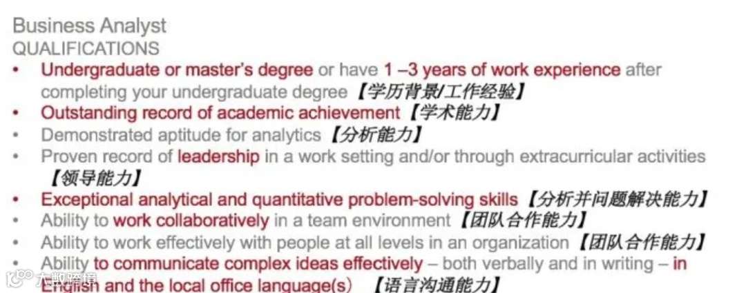 麦肯锡对于初级咨询顾问的招聘JD如下: