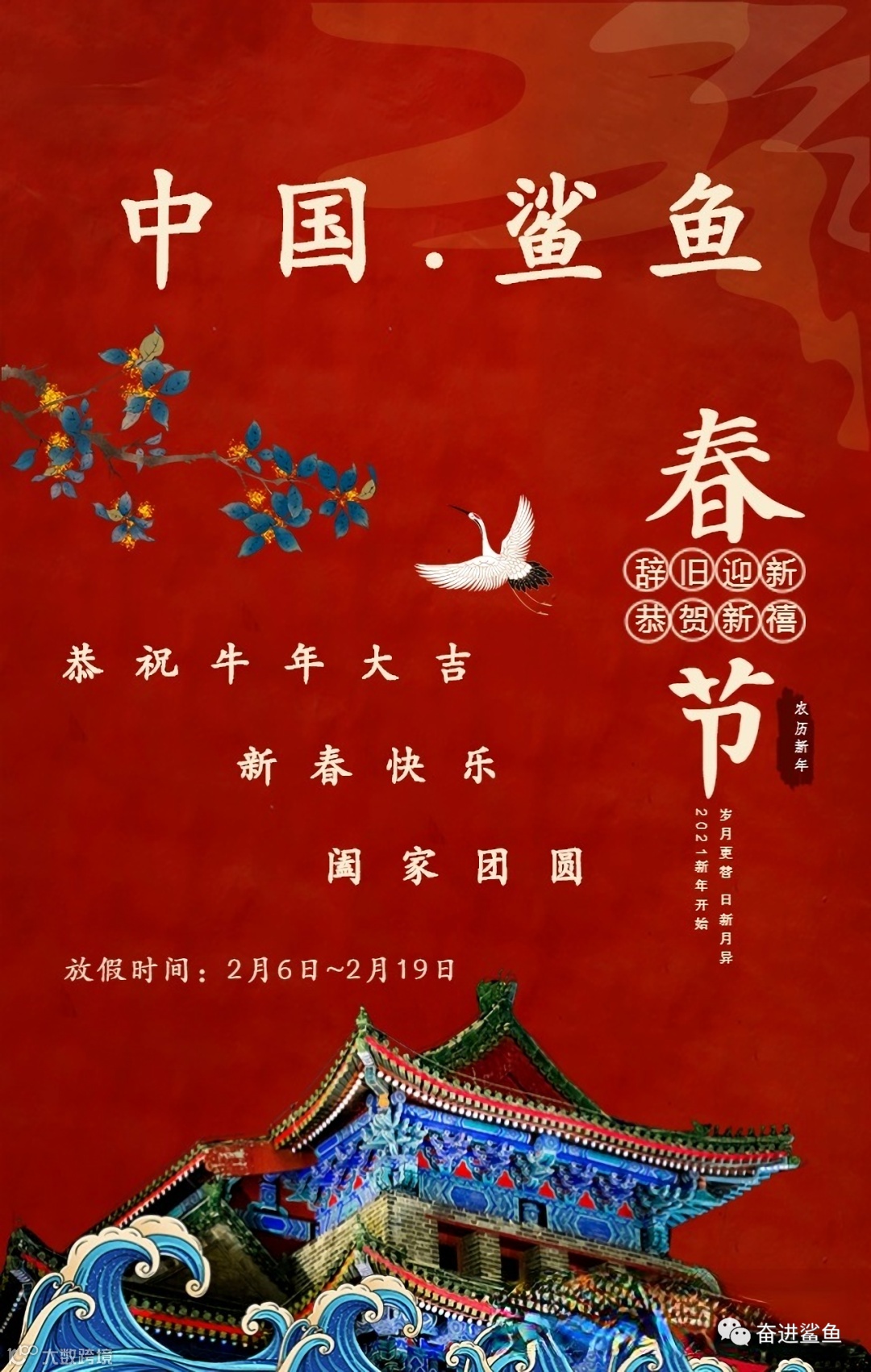 新春佳节到来之际,中国.鲨鱼全体人员恭祝您和您的家人,牛劲十足,牛气冲天,牛转乾坤,牛运亨通,牛年大吉!