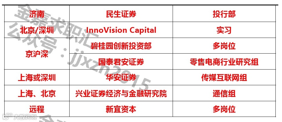 如需发布招聘信息直接发送至金融小伙伴(jrxhb2014)后台哦,也可以添加工作人员微信号(jzhecthu)联系发布,请备注“姓名+单位+发布招聘”