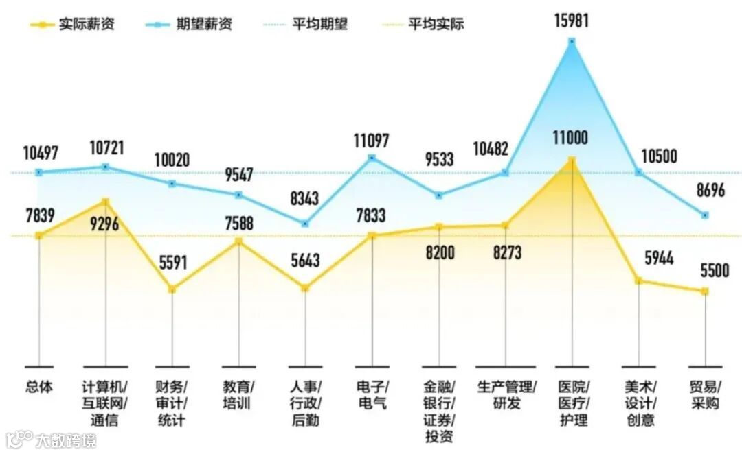 当然,与实际薪资相比,毕业生的期望薪资更高。这也是很多应届生的“通病”,就是对行业的实际情况并不了解,所以在求职的时候会有落差。
