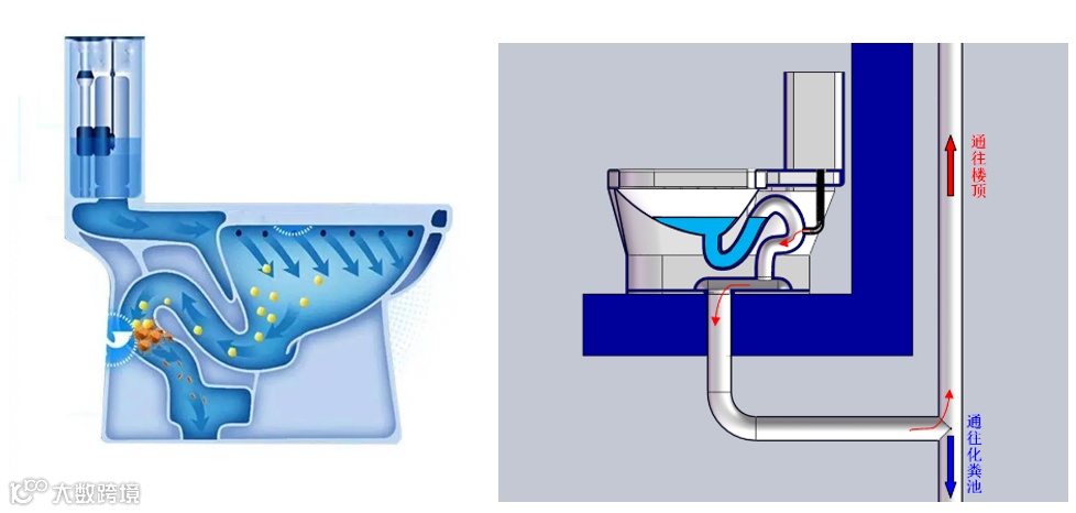 目前一般采用虹吸式坐便,这种坐便器跟以往的直冲式坐便器相比管道较窄,弧度大,目的是让坐便器管道中储存更多的洁净水,以更好的阻挡主管道和化粪池的臭气进入室内,这种马桶在一定程度上缓解了厕所异味的问题。