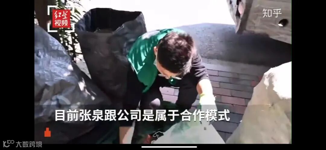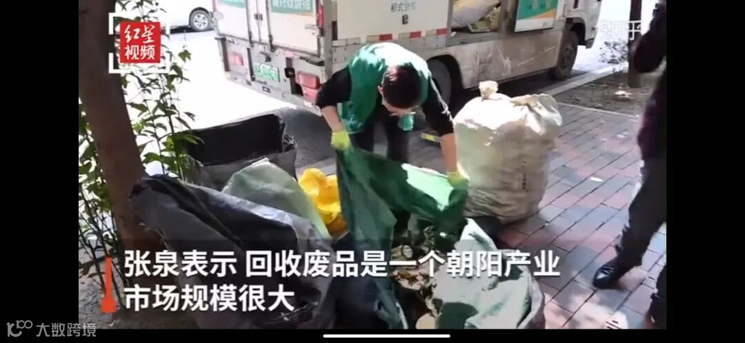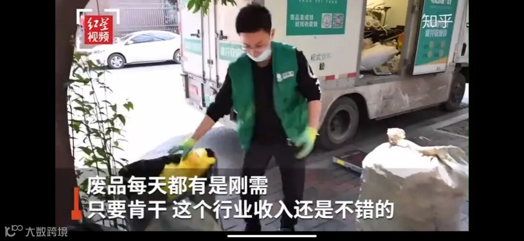 视频里的小伙子不是自己创业单干,他在一家企业里做事,这家专业废品回收公司的LOGO在视频里没有被马赛克掉,明明白白看得清:收废猿。