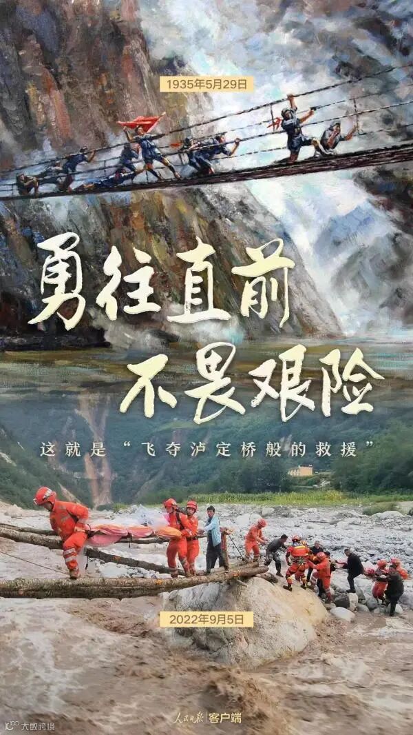 ●前有红军“飞夺泸定桥”,后有甘孜特警队员“飞夺泸定桥式的救灾”,前用身躯冲破地热的封锁,后无畏困难,只为救援的精神,一代传承一代,永不褪色,不怕牺牲。