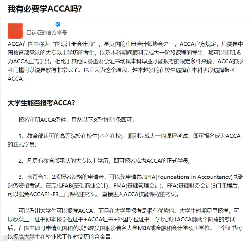 “听说考ACCA相当于读了名校MBA?”