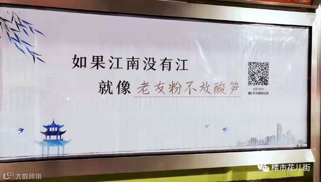 前几天,不知道在哪个公交站牌上看到这么几个广告画面:“如果江南没有江,就像中秋不见月亮+二维码”、“如果江南没有江,就像老友粉不放酸笋+二维码”。