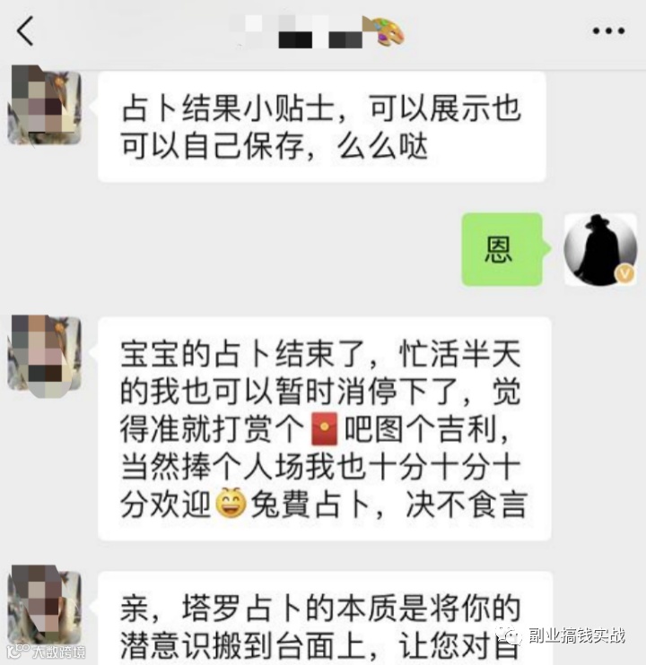 在微信上进行塔罗牌占卜的,多数是通过提前设置好的话术进行被动裂变涨粉和变现。