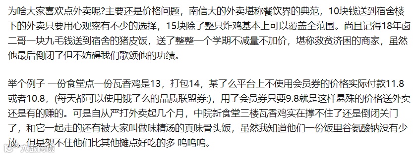 如果食堂味道过得去,价格也过得去,那大部分学生都不会舍近求远去吃外卖。