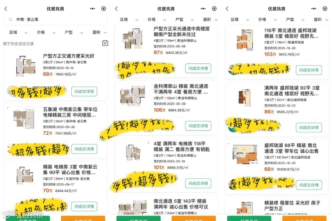 五象湖西从当年1.2万-1.4万元/㎡,二手房成交价已调整到7000-9000元/㎡+的主力成交价。