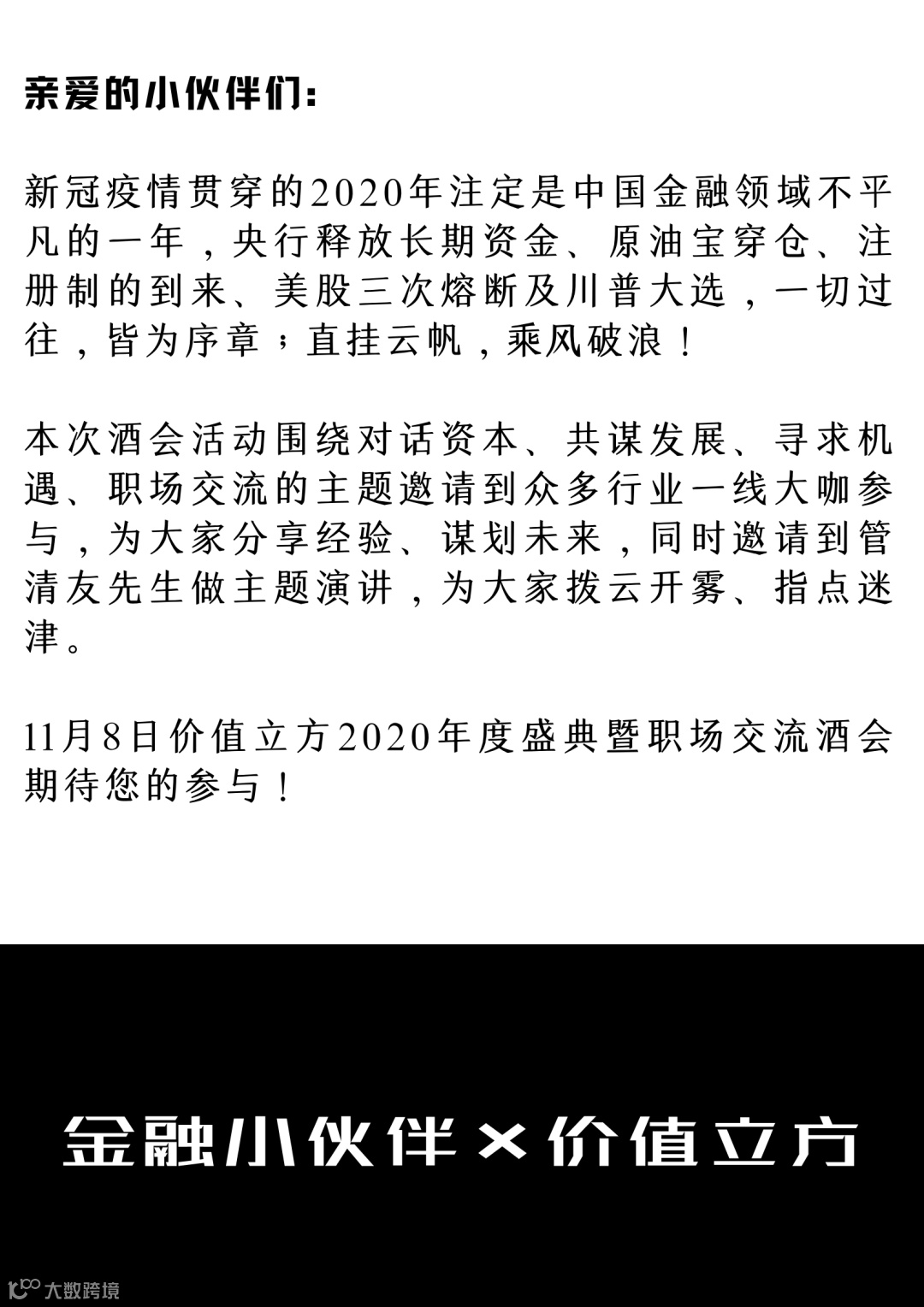 金融小伙伴秉持职场引路人、成长永相伴的理念,致力于为海内外学子打造金融垂直细分领域的信息共享交流平台。价值立方是金融小伙伴的兄弟品牌,并致力于培养商科核心人才,聚焦于泛金融领域职前教育,希望帮助求职群体和初入职场者快速找到适合自己的Career Path,并定制适合学员的职业规划。