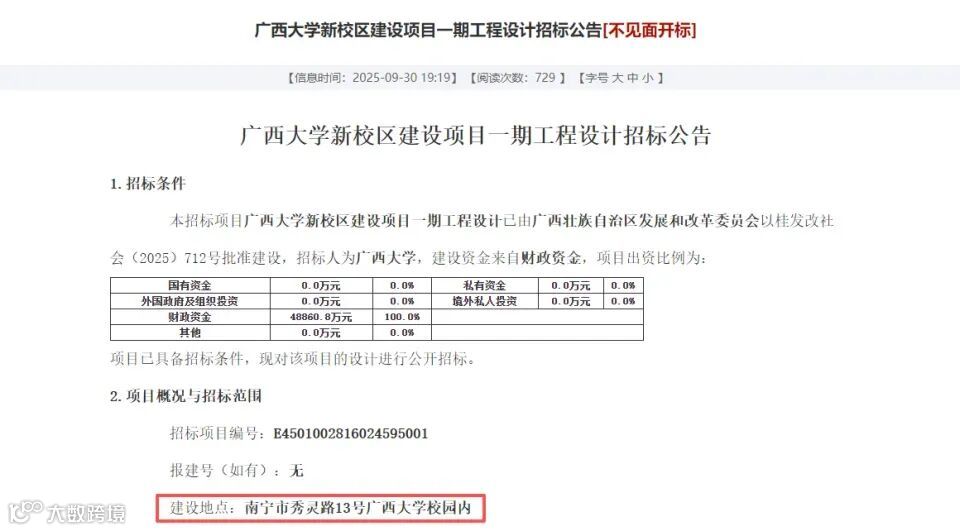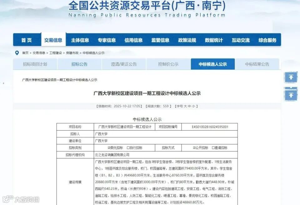 且根据传出中标的公告,西大新校区就在广西大学校园内。