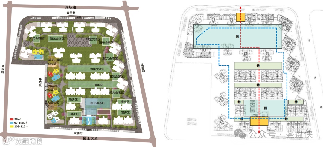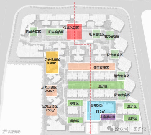 而一环则为功能环,由健身跑道、休闲会客、休闲散步等功能围绕小区一圈组成。