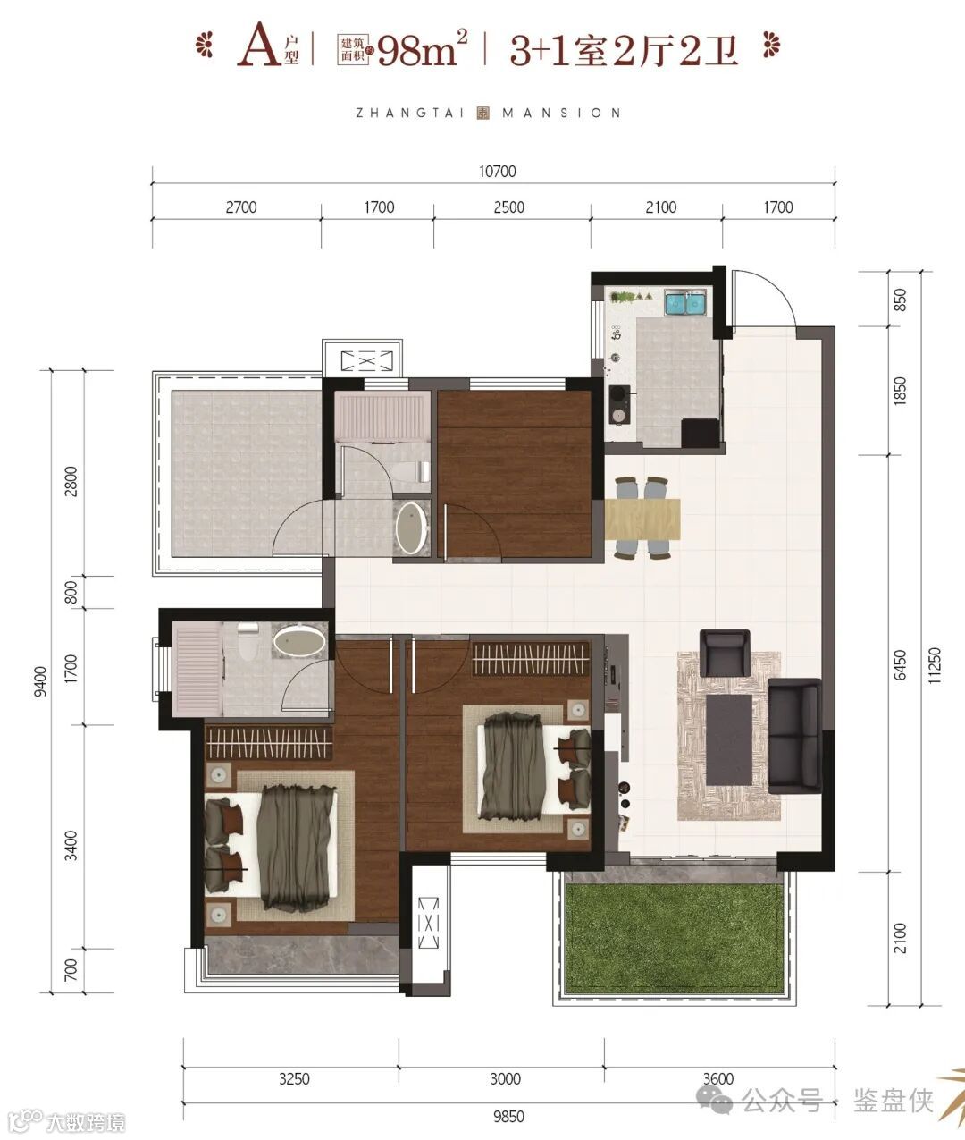 第二款是98㎡的户型,赠送面积约15㎡。别人做三房,它可以做四房,功能更强大。哪怕是二孩家庭,也能妥妥安排。